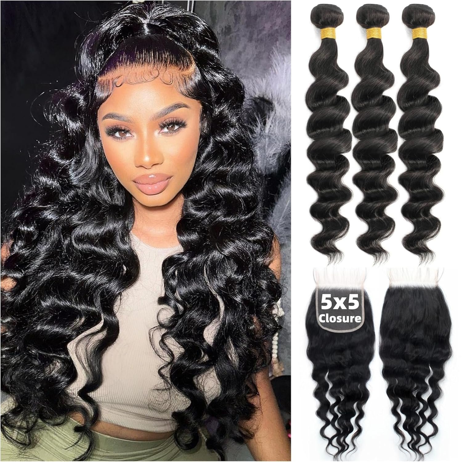 ✨ Closure Kinky Wave 5 × 5 – 22 · Grade 12A